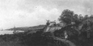 Harbor Landscape With Figure And Ships