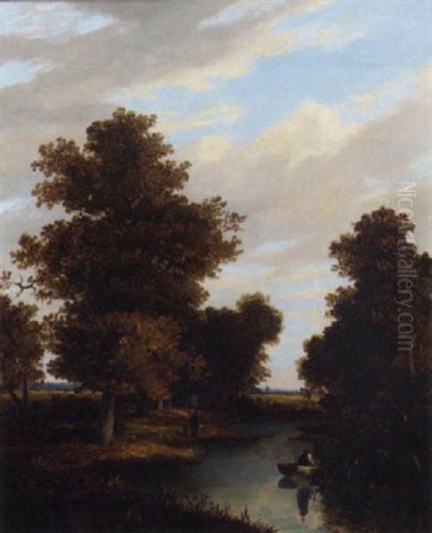 Figures In A Wooded River Landscape