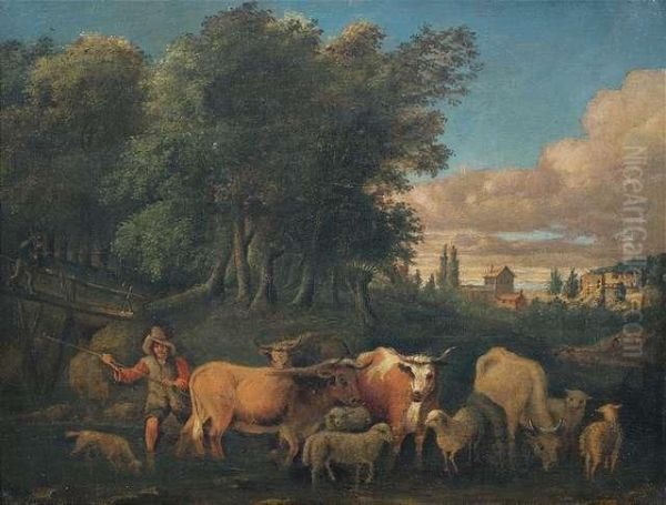 Hirtenszene In Bewaldeter Landschaft