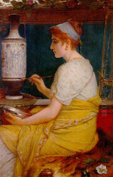 Jeune Femme Peignant Sur Un Vase