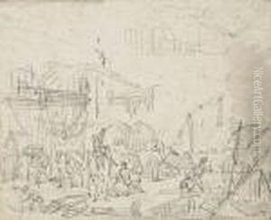 A Military Encampment With Figures Resting In The Foreground