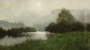 Pecheurs Au Bord De L'eau Pres D'une Ferme