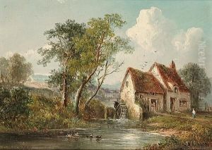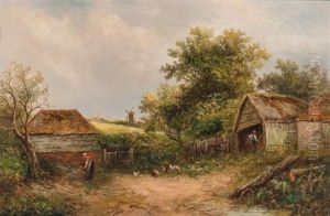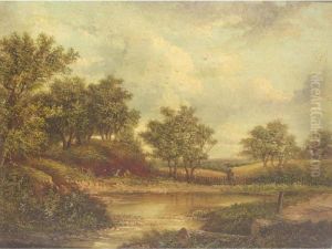 Feeding The Chickens; And Figures In A Punt In A Wooded Landscape
