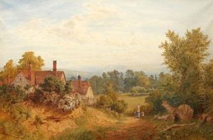 Country Landscape With Timbered Cottage In The Foreground, A Figure On A Track