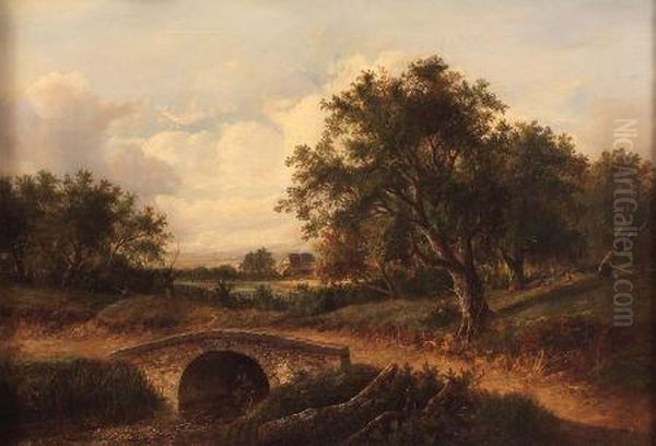 Landscape With Bridge Over River And Figuresand Cottage