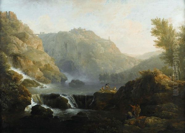 Draughtsmen in front of a Waterfall at the Foot of the Tivoli