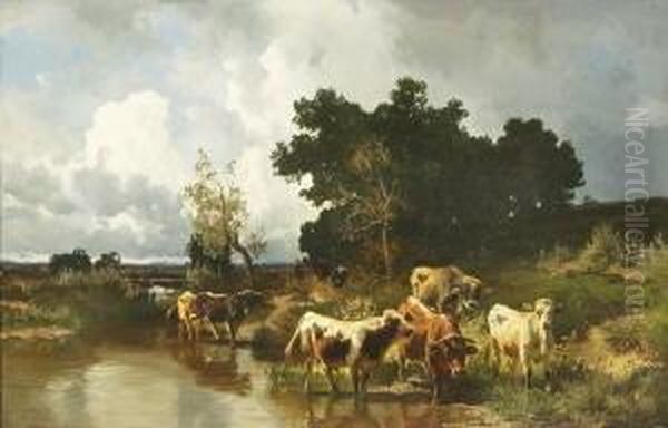 Bring the timeless beauty of Joseph Wenglein's Kuhe Am Wasser. into your home with a handmade oil painting reproduction. Carefully recreated on canvas by skilled artists using traditional techniques, this piece captures the delicate brushwork, subtle light, and vibrant color of the original masterpiece. With museum-level quality and rich texture, it brings elegance and artistic depth to any space. Enjoy free shipping and make this masterpiece a part of your personal collection.