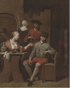 A Merry Company Drinking And Smoking In An Interior