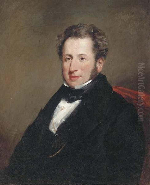 Portrait Of A Gentleman, Seated Half-length, In A Black Coat Andblack Tie