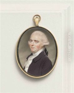 A Gentleman, Wearing Black Cloak, White Lace Jabot And Black Ribbon Bow And Long Curled Natural Wig.
