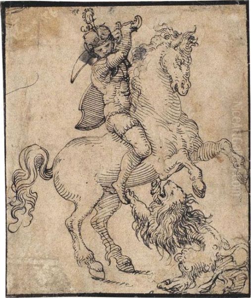 Berittener Soldat, Mit Einem Lowen Kampfend