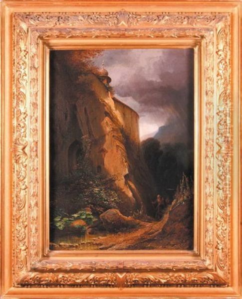 Mnich Przy Gorskiej Kapliczce Oil Painting by Jost Joseph Niklaus Schiffmann