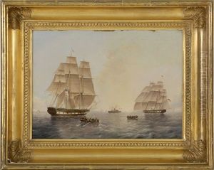 Merchantmen drying their sails offshore