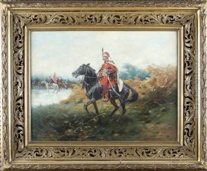 Kosakenreiter Auf Vorposten Am Ufer