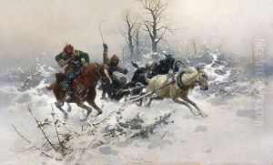 Kosaken-reiterzug In Verschneiter Winterlandschaft
