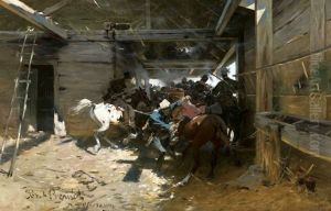A Cavalry Skirmish On The Outskirts Of A Town