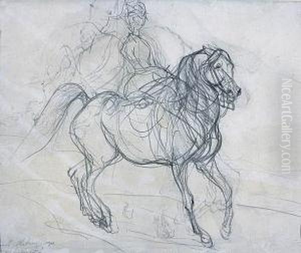 Amazonka, Na Odwrocie Amazonka Na Wspietym Koniu Oil Painting by Jozef Chelmonski