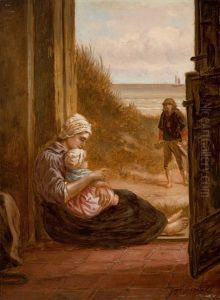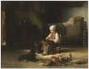 Interior Scene "mother Knitting With Child"