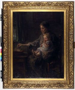 An Interior With A Mother Feeding A Child