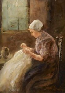 A Woman Doing Needlework Oil Painting by Jozef Israels