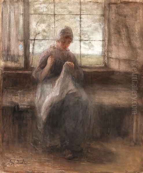Bring the timeless beauty of Jozef Israels's Girl sewing by a window into your home with a handmade oil painting reproduction. Carefully recreated on canvas by skilled artists using traditional techniques, this piece captures the delicate brushwork, subtle light, and vibrant color of the original masterpiece. With museum-level quality and rich texture, it brings elegance and artistic depth to any space. Enjoy free shipping and make this masterpiece a part of your personal collection.