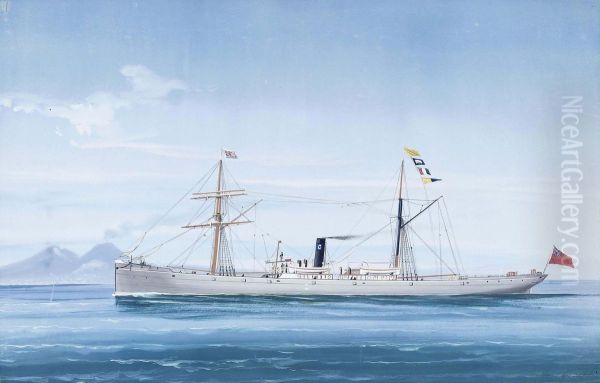 The English Steamship Beaconsfield In The Bay Of Naples, Vesuvius Beyond