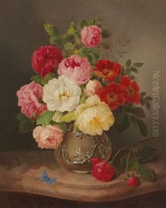 Still Life With Urn, Porcelain Elephant And Roses In A Glass Bowl