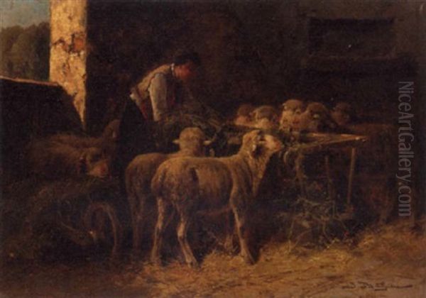 Bring the timeless beauty of Jules Bahieu's Sheep With A Shepherd In A Barn into your home with a handmade oil painting reproduction. Carefully recreated on canvas by skilled artists using traditional techniques, this piece captures the delicate brushwork, subtle light, and vibrant color of the original masterpiece. With museum-level quality and rich texture, it brings elegance and artistic depth to any space. Enjoy free shipping and make this masterpiece a part of your personal collection.