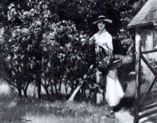 Jeune Femme Cueillant Des Pivoines