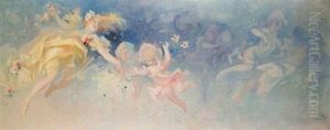 Reproduction of a poster advertising 'The Rainbow', a ballet-pantomime presented by the Folies-Bergere, 1893