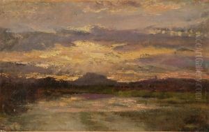 Flusslandschaft In Der Abenddammerung Mit Fischer