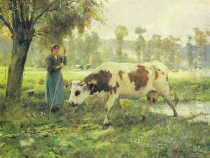 Shepherdess With Cows And Sheep In The Shade Of Midday