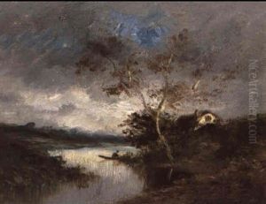A River Landscape With A Figure In A Boat