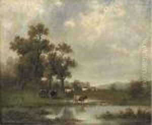 Les Troupeaux S'abbrevant Pres Des Moulins
