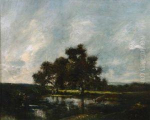 A River Landscape With A Figure In A Boat