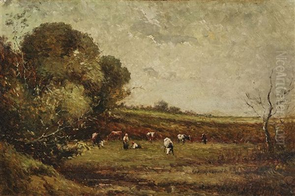 Pasture Landscape With Shepherds And Cows