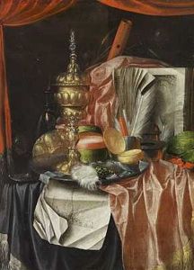 Stilleben Mit Buch, Feder Und Kofferchen.