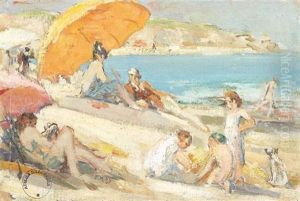 View Of The Brittany Coast With Women And Child