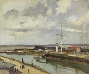A Channel With A Lighthouse On Shore