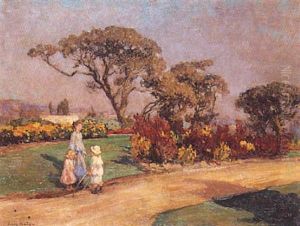 Figures And Dog In A French Chateau Garden