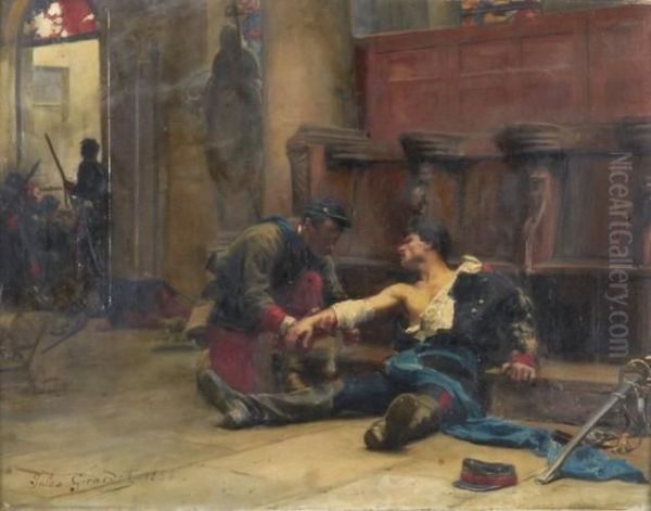 Bring the timeless beauty of Jules Girardet's Soldat Blesse Lors De L'assaut D'une Eglise into your home with a handmade oil painting reproduction. Carefully recreated on canvas by skilled artists using traditional techniques, this piece captures the delicate brushwork, subtle light, and vibrant color of the original masterpiece. With museum-level quality and rich texture, it brings elegance and artistic depth to any space. Enjoy free shipping and make this masterpiece a part of your personal collection.