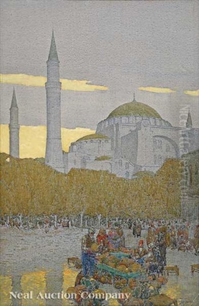 Bring the timeless beauty of Jules Guerin's Market Outside The Hagia Sophia into your home with a handmade oil painting reproduction. Carefully recreated on canvas by skilled artists using traditional techniques, this piece captures the delicate brushwork, subtle light, and vibrant color of the original masterpiece. With museum-level quality and rich texture, it brings elegance and artistic depth to any space. Enjoy free shipping and make this masterpiece a part of your personal collection.