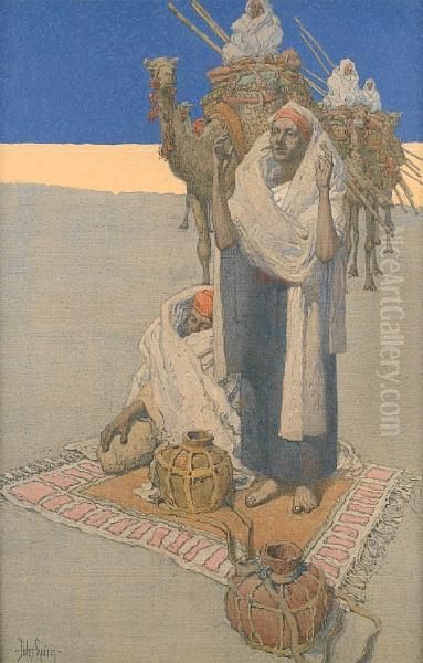 Bring the timeless beauty of Jules Guerin's Prayer In The Desert into your home with a handmade oil painting reproduction. Carefully recreated on canvas by skilled artists using traditional techniques, this piece captures the delicate brushwork, subtle light, and vibrant color of the original masterpiece. With museum-level quality and rich texture, it brings elegance and artistic depth to any space. Enjoy free shipping and make this masterpiece a part of your personal collection.