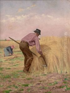 La Moisson Oil Painting by Jules Jacques Veyrassat