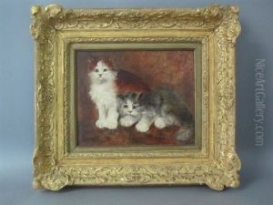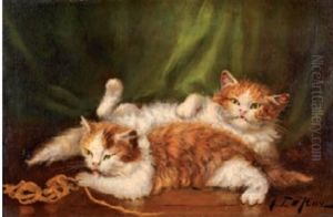 "les Deux Chatons" Huile Sur Toile, Signeeen Bas A Droite. 27 X 35 Cm