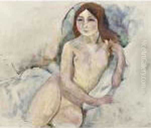 Nu Assis Oil Painting by Jules Pascin