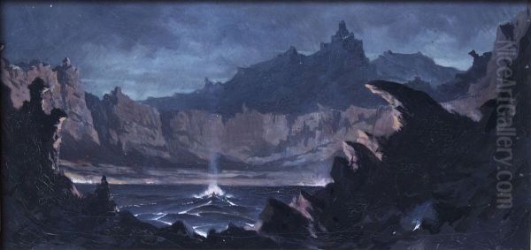 Kilauea Caldera Oil Painting by Jules Tavernier