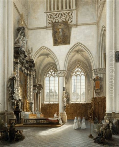 Interior Of The St. Jacob Church Antwerp With Communicants