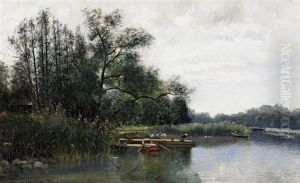 Insjolandskap Oil Painting by Julia Charlotte Mortana Stroemberg