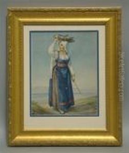 Young Maid With Her Cows At The Water's Edge